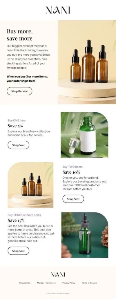 These are short, attention-grabbing blurbs or links to blog posts that reference your products, but also have novel value to your subscribers (e.g., makeup tutorials for makeup brands, styling guides for clothing brands, weekly cleaning schedules for cleaning supplies brands, weekly workout suggestions from gyms).