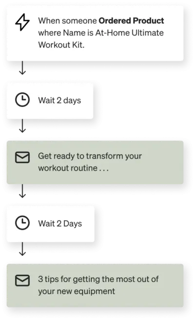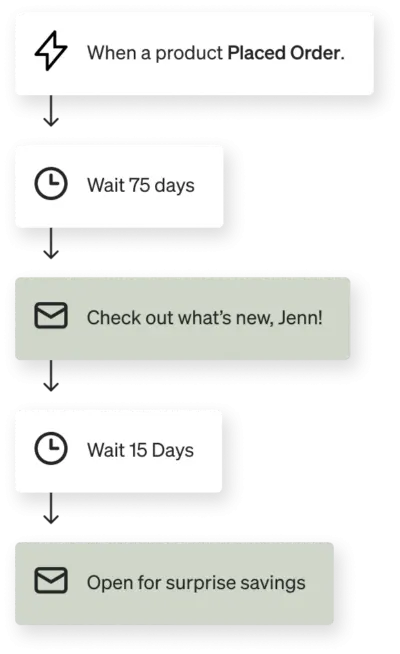 Automate customer retention efforts through well-placed, intentional flows throughout the customer lifecycle.