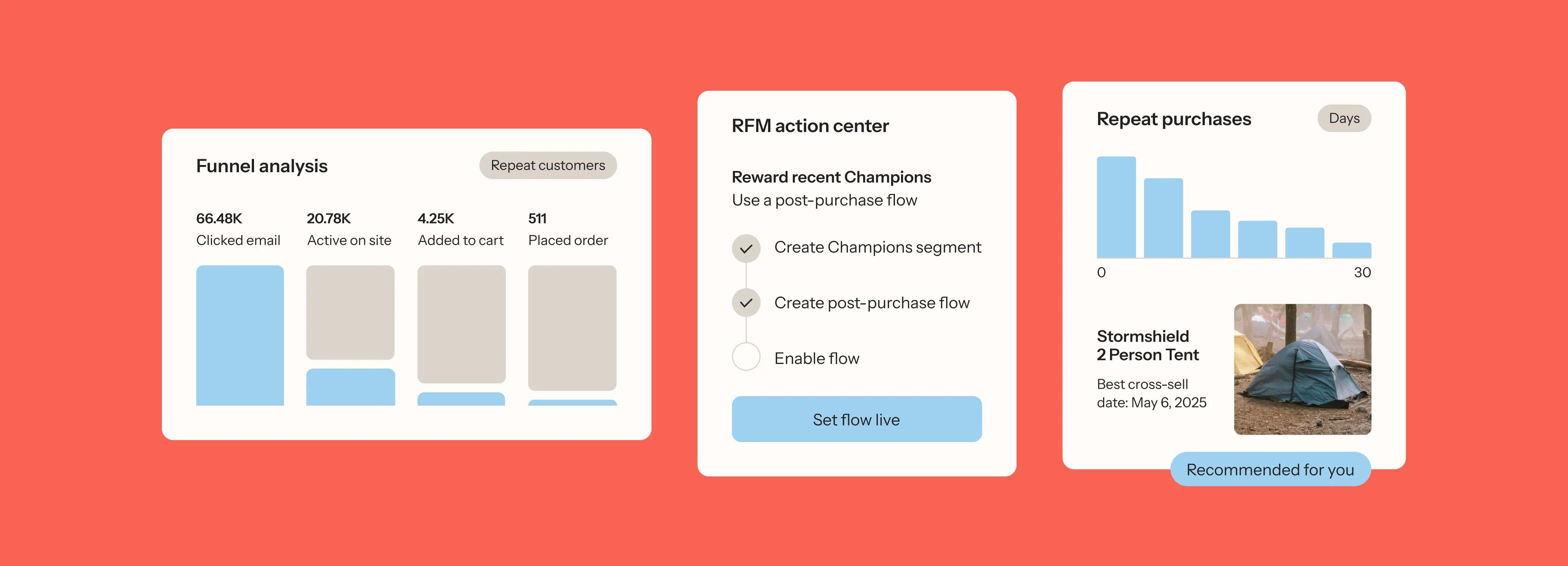• Automatically identifying your most valuable customer segments, and recommending actions that get them closer to a repeat purchase